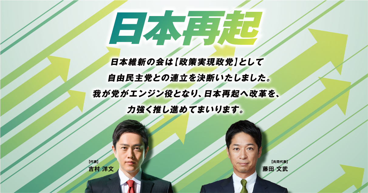 その意味で、今回の選挙は「政策の方向性」を問う選挙であるべきです。維新は以下を最重要政策として捉えており、これらを前にすすめる気概です。